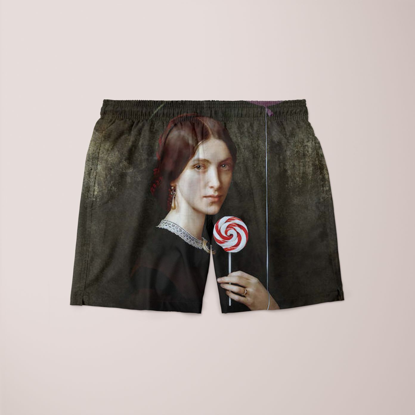 Portrait Of Woman With Lollipop And Balloon Shorts