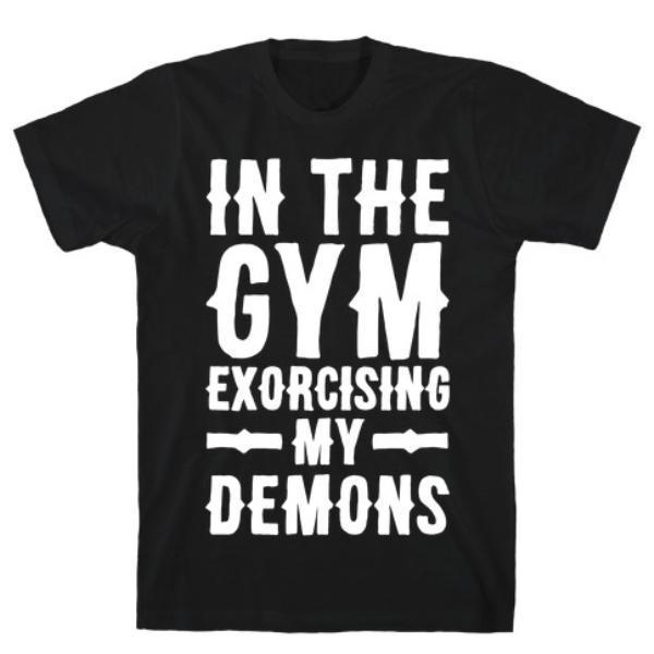 IN THE GYM EXORCISING MY DEMONS WHITE PRINT T-SHIRT